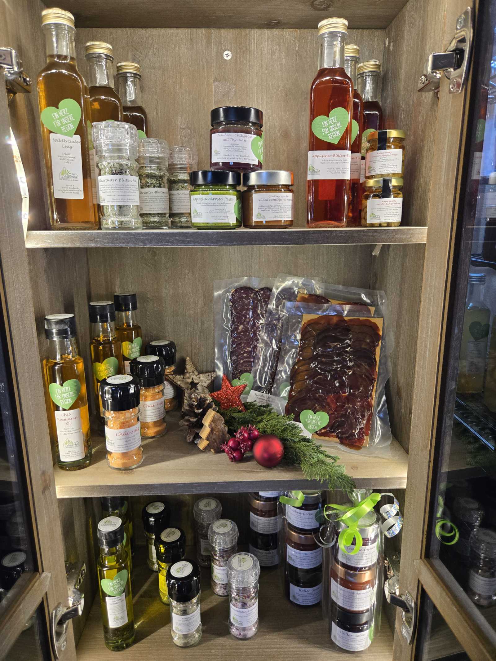 Dazu findet ihr herzhafte Spezialitäten aus Udos Räucherkammer wie Wildsalami, Wildschinken und weitere feine Räucherwaren. Perfekt, wenn ihr etwas Besonderes verschenken oder selbst genießen möchtet.